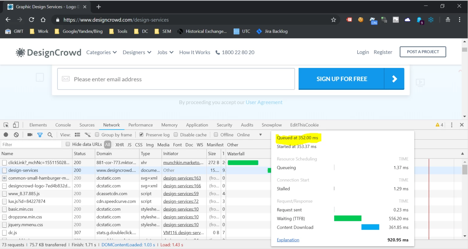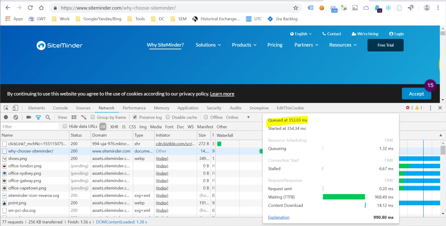 I've attached three screen grabs of the network profile for these sites showing the link click delay.