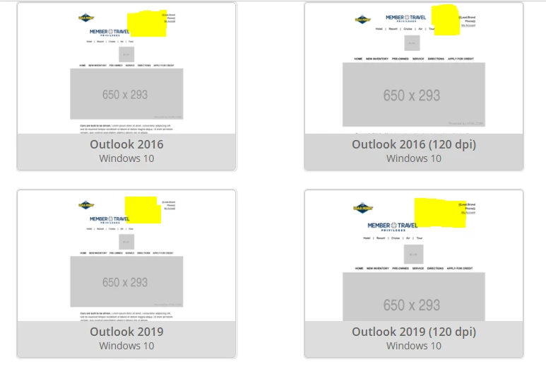 I'm also noticing a lot of space appearing between the center logo and the content in the far right in some of the Outlook versions.