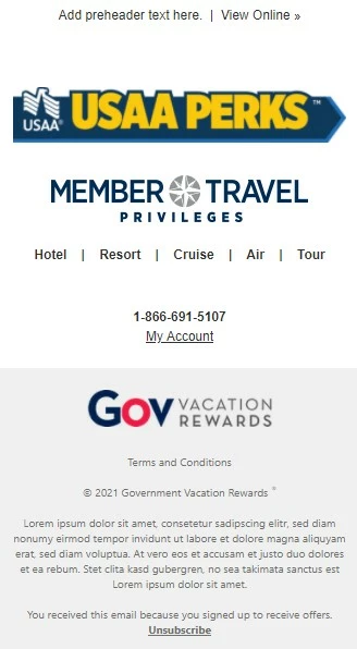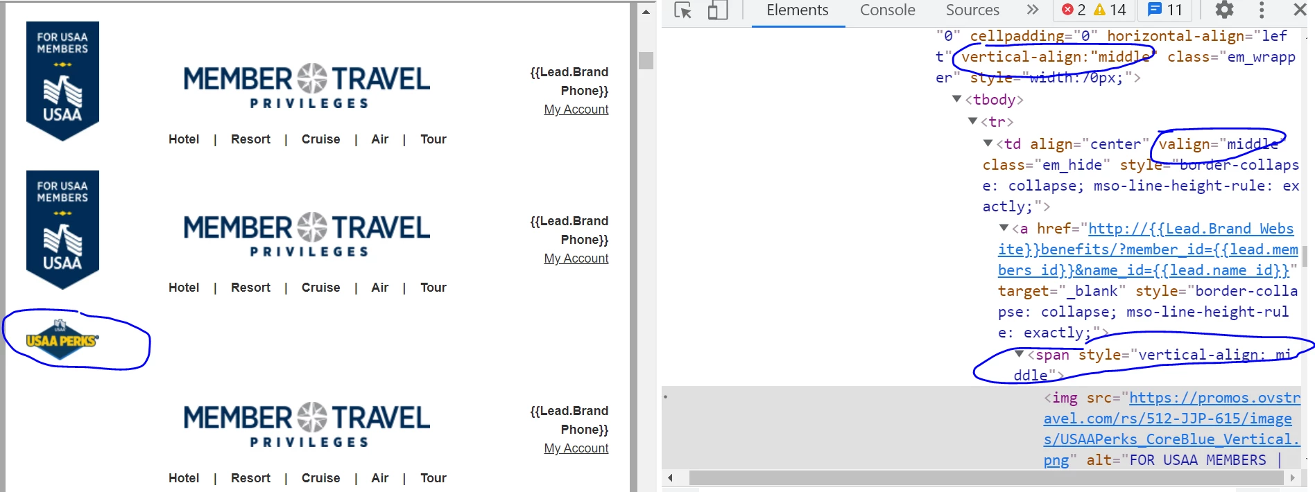 1. Make it so that the USAA Perks logo (vertical version) aligns vertically with the Member Travel Privileges logo