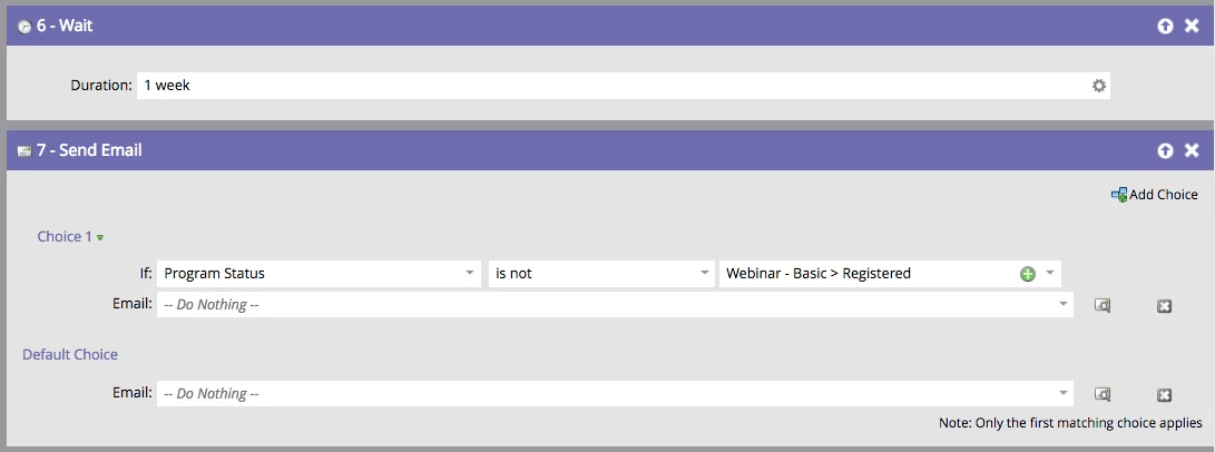 I have a silly question. I have 2 event invites. The two are going to the same list of people. The first invite went out already. The 2nd needs to go out next week. How do I ensure that the people that registered already through the first email invite, don’t get the 2nd email? This is how the logic is set up currently. I am using "Not Program Status was Changed". Is this correct or should i add in another filter.
