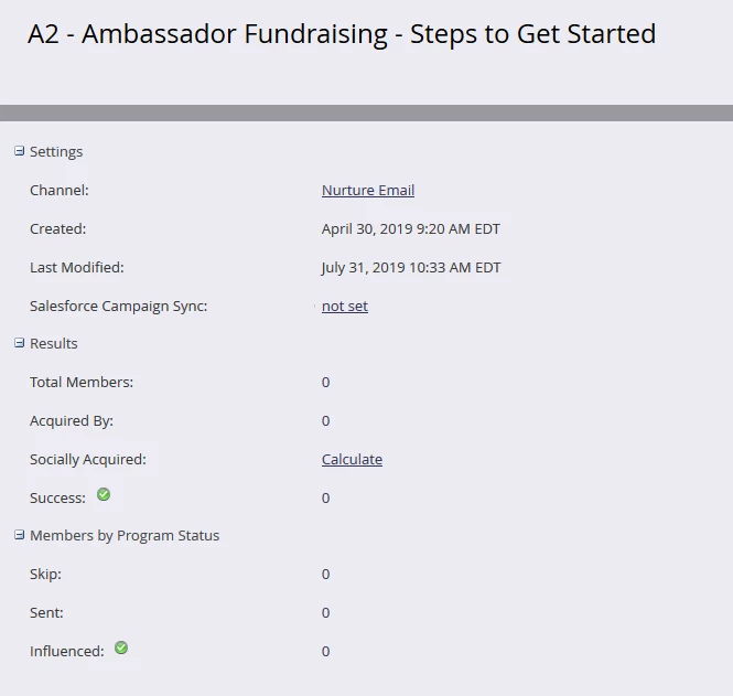 - Are they a member of the engagement program (this is controlled by a Smart Campaign that just adds new prospects to the program)