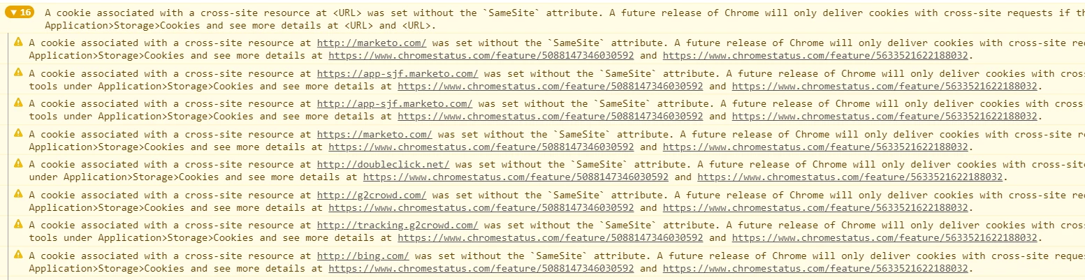 New chrome warning about Marketo cookie SameSite and Secure attributes
