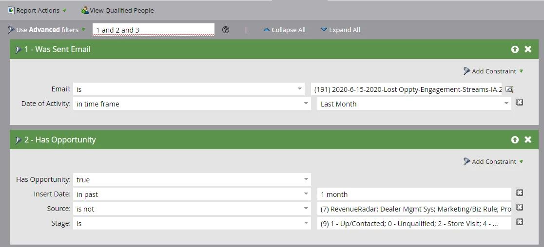 Is there a filter or logic I can add so that it only gives me people who were sent an email and then inserted a new opportunity?