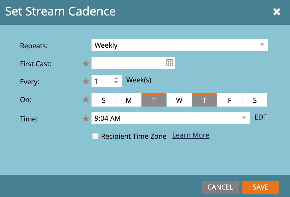 | What if I want my engagement program to send multiple times per week? How can I adjust the cadence to make it happen? |