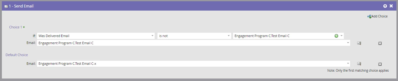 I would expect that if the recipient has not previously received "Test Email C", the flow would send Test Email C, and if the recipient HAS received Test Email C before, the flow would instead send "Test Email C-x".