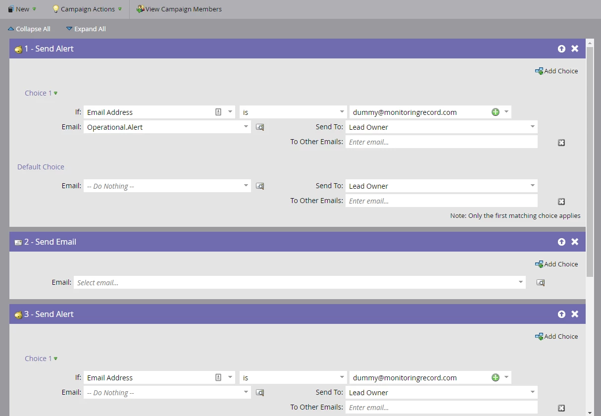 I tried with "Send alert" step right before the "Send" step, but that ended up in nothing.