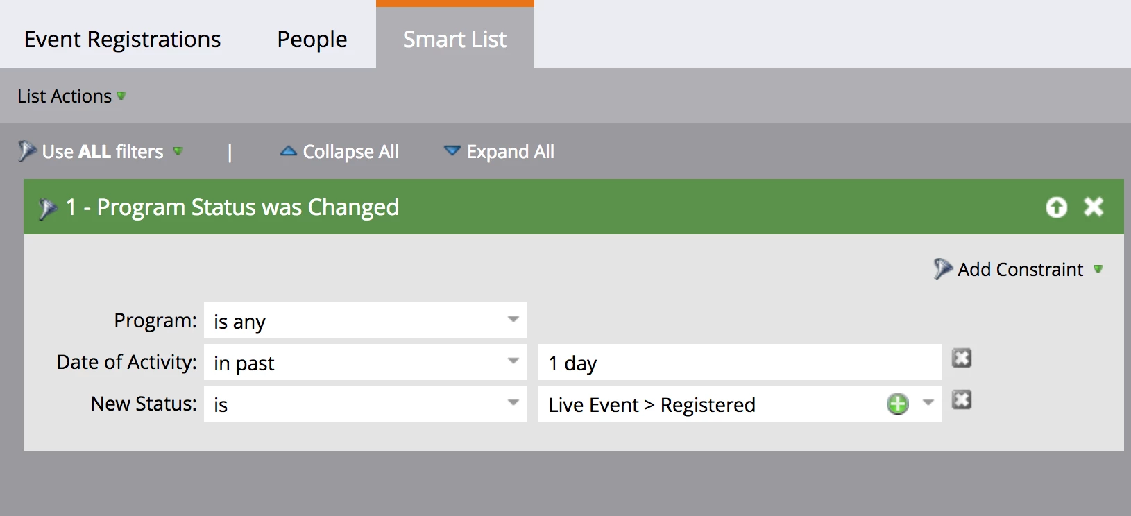 We have several event programs with registrations (status change) in each.