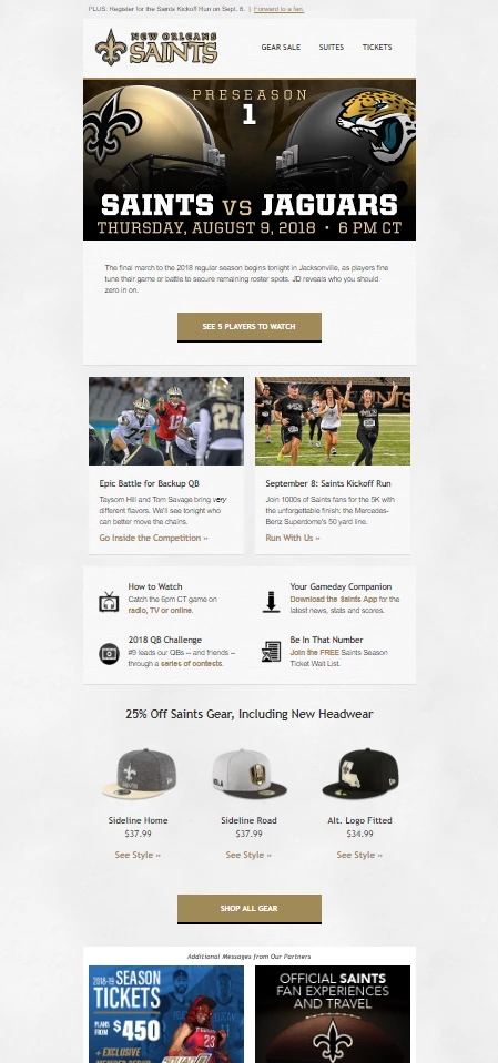 Before Saints games, we send a preview email to the full DB. OR fluctuates depending on team performance (and clever copywriting), but has been fairly consistent over the last few seasons.