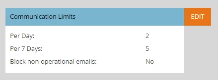 Review the communication limits you have operationally set in Admin. These limits should be based on your company’s policy. For this example, we are using the default communication limits of 2 per day and 5 per week.