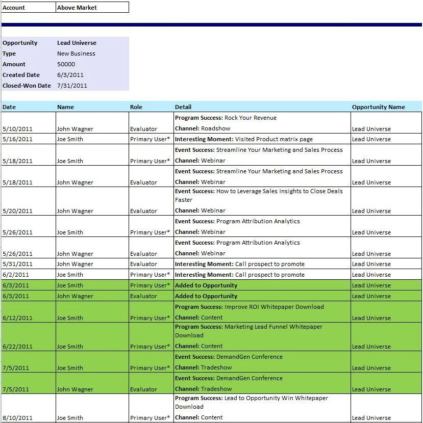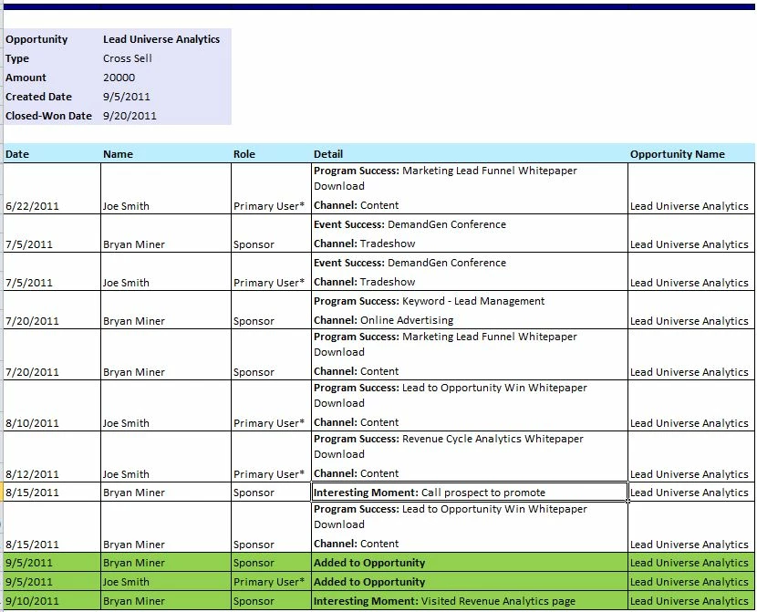 The Opportunity Influence Analyzer is great per opportunity, but it would be great to see the interactions in a list format, and then in aggregate.