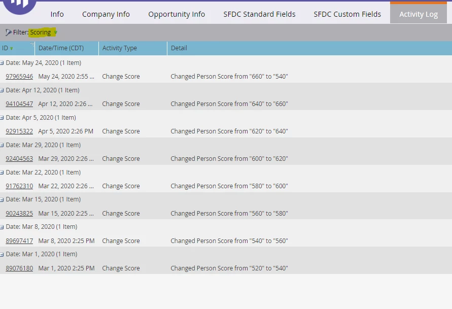 I have created and turned on our lead scoring program. Our current MQL score is 60 so basic behavior and demographic scoring campaigns are from 1-60 points. I notice persons starting their score in the hundreds, how can this be?