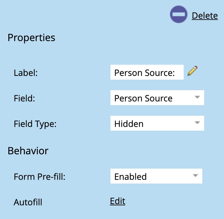 Person Source hidden field not populating