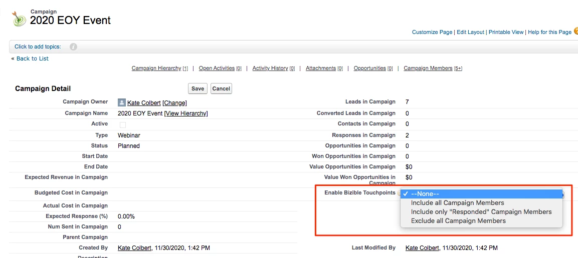 - Now that you've built the Custom Campaign Sync Rules in your Marketo Measure account, it's time to clean up the "Enable Bizible Touchpoints" field in your CRM and discontinue its use/prevent future use.