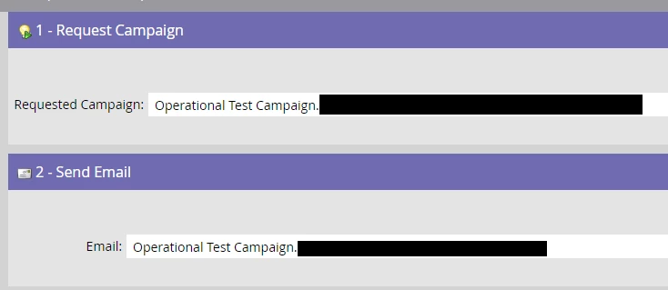 In Campaign 1, a campaign is requested and the email with the URL is sent out.