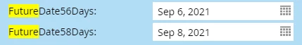 The purpose of these data value updates is to enable the populating of the Arrival and Departure dates on the webpage to 56 days from today's date {{system.date}}and 58 days from today's date, respectively, when the contact clicks on the URL.