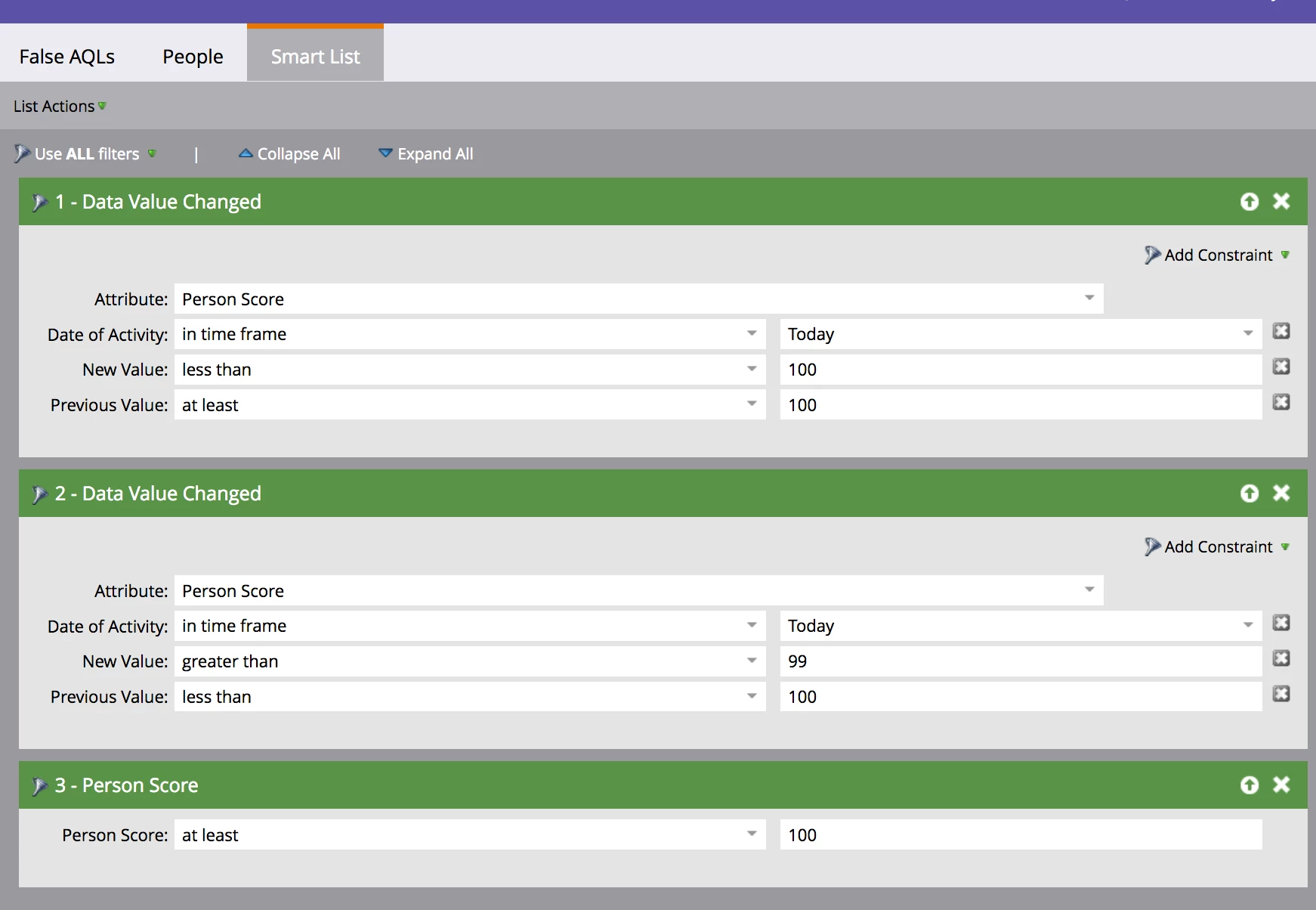 5) As the programme adds the demo score back, the person goes back over the AQL threshold of 100 points, thus triggering notifications to Sales of a new AQL lead.