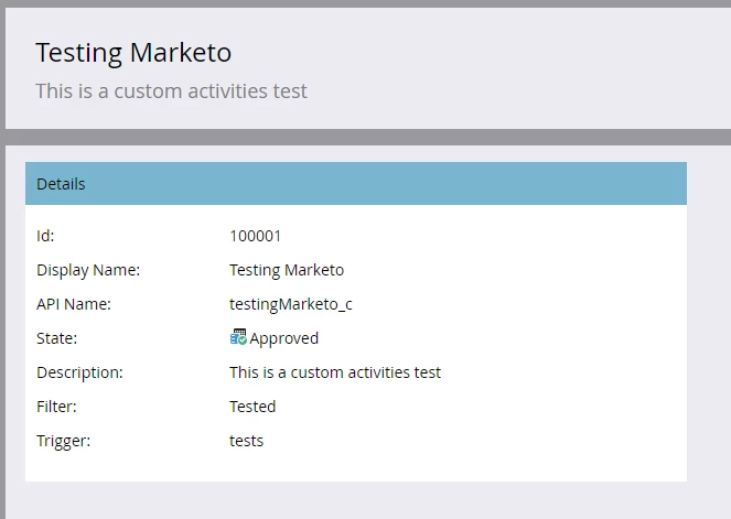 I am confronting with a problem when trying to add a field value to a custom activity using REST API. I've created the field, I've saved the custom activity. When I try to add the activity without that field, it all works well (i.e. the custom activity is saved in marketo, and can be seen there). But if I try to add the field "productTest", the returned message is: "'Invalid attribute 'productTest''".
