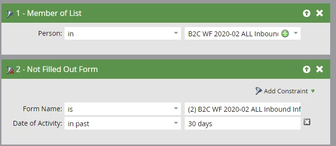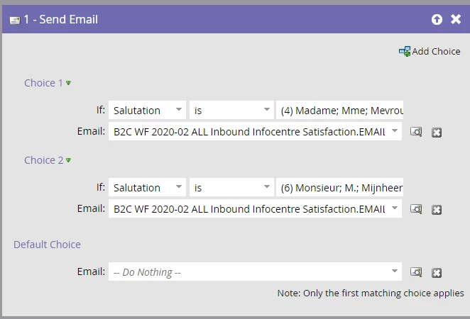 To these people I have to send an email to ask them their satisfaction score following our phone call. This email is sent only once and only if they did not fill in the form 30 days ago.