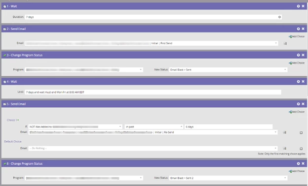 Currently, I am having a problem with the re-send & actions after the first send going out. The initial send with wait period is working appropriately though.