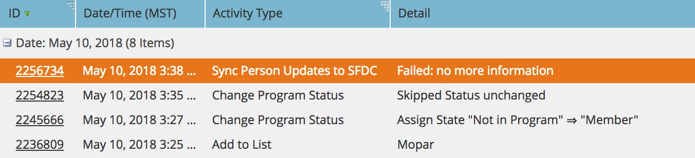 Sorry Mariah, did mean the results tab (it is basically a history log of that smart campaign).