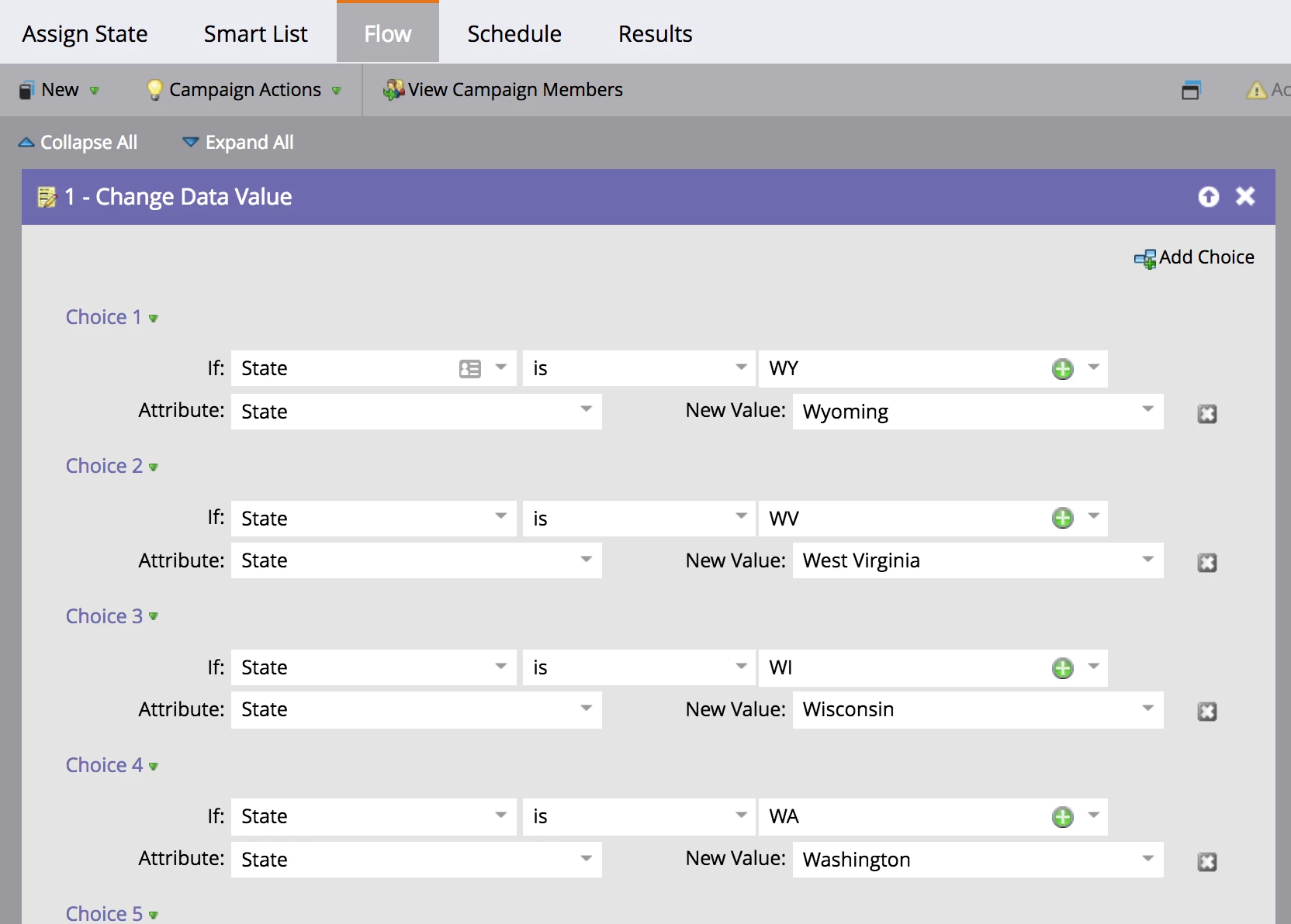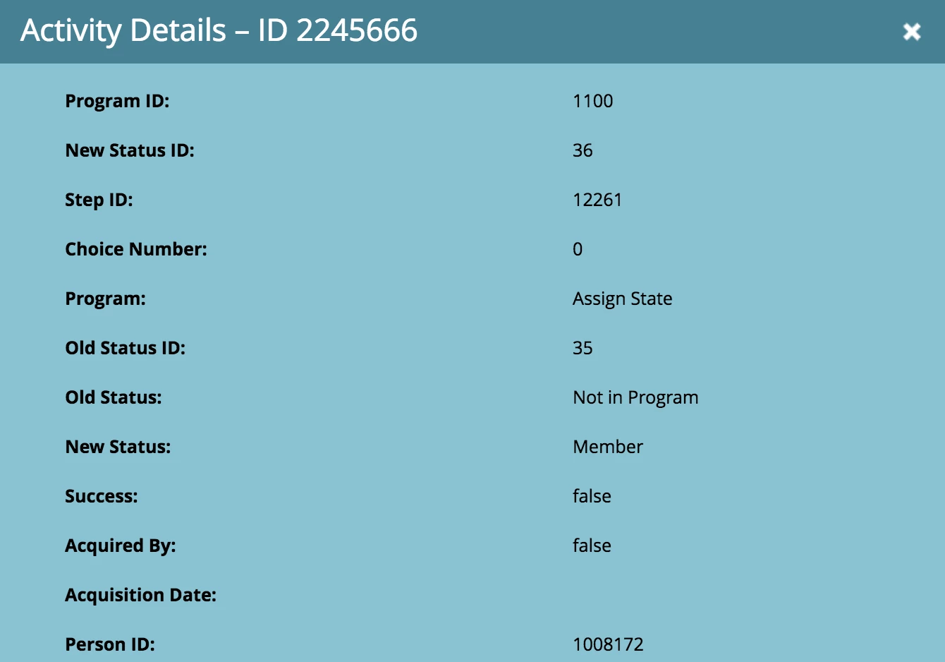 There is a change program status to Operational > Not in Program after the change data value. Could it be that there are 49 choices for the change data value flow step so it's timing out and them just kicking them out of the program?