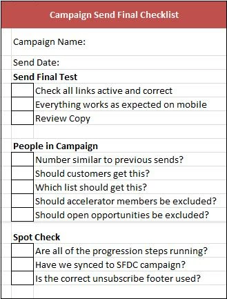 Why does Marketo not create a short QA guide or cheat sheet for users to follow before launching a campaign? A list with checkboxs as a PDF is what I envison. Provides a good experience for users and creates happy customers.