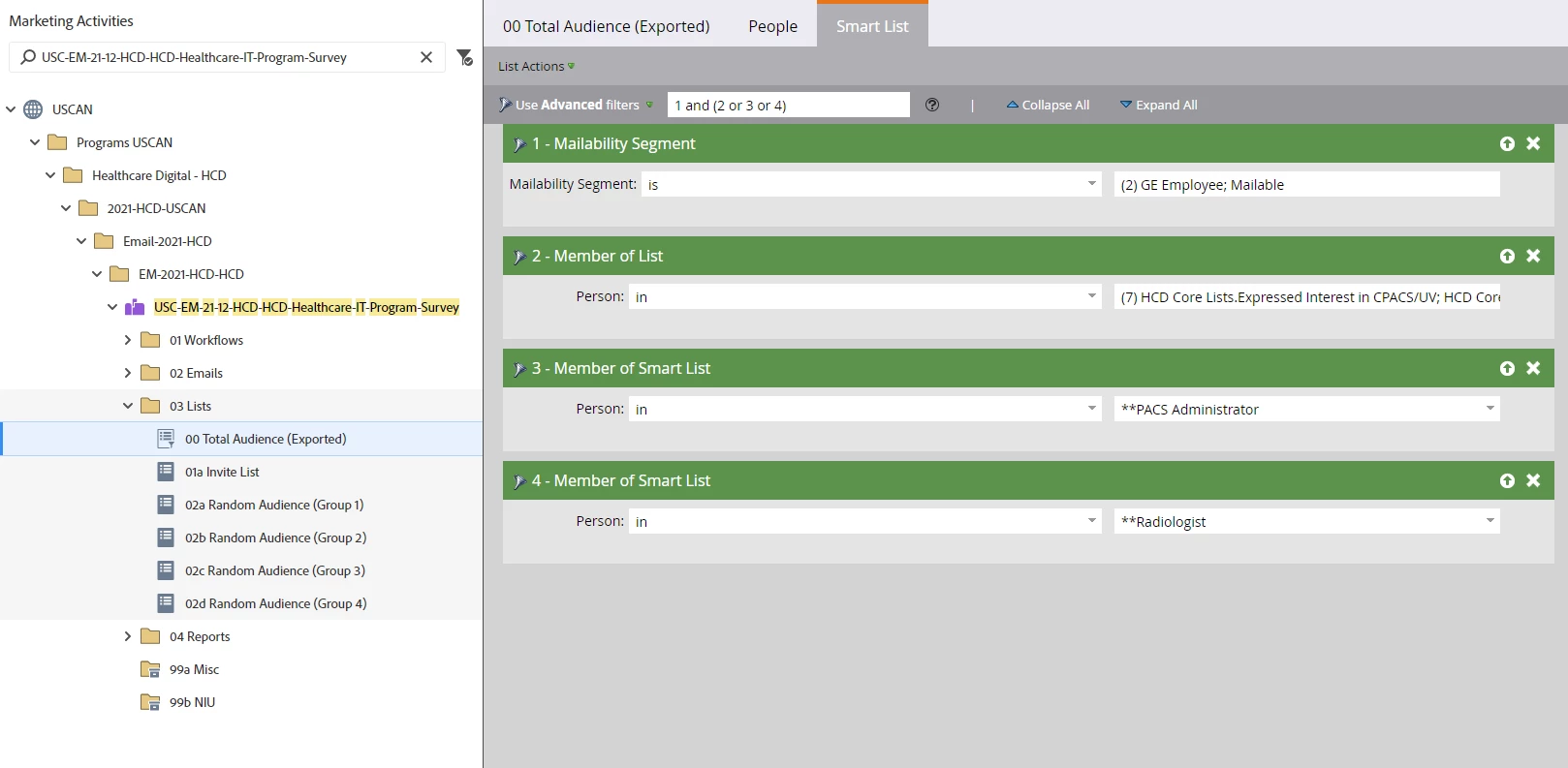 - This can depend on how big your list is – (e.g., Total Audience = 28,000 will break list into four groups listed from 02a Random Audience (Group 1) all the way to 02d Random Audience (Group 2)).