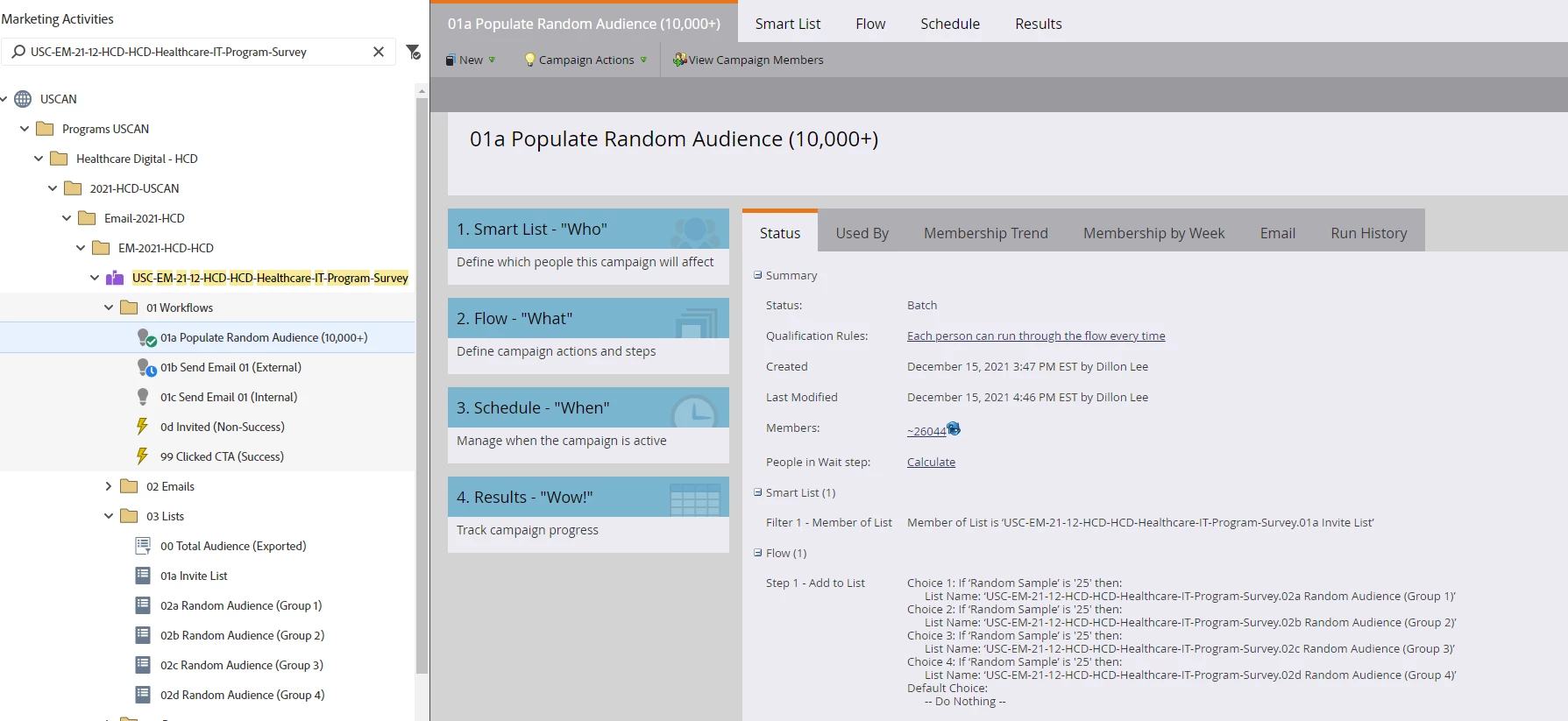 Step 5: Locate the 01a Populate Random Audience (10,000+) smart campaign