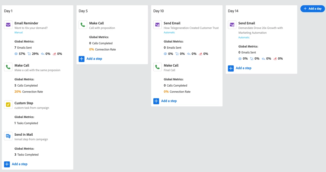 Multi-Step Sales Engagement Campaigns: Sellers can access to sales playbooks curated specifically for them. Leverage playbooks to execute meaningful engagements with customers and prospects within the context of sales insights and marketing intelligence with governance controls such as region-specific playbooks.