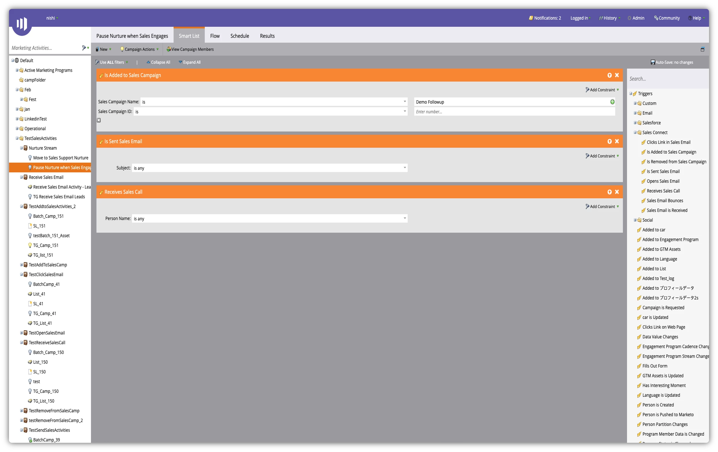Improve personalization with new marketing workflows: And because it’s a truly integrated and connected experience, all of this engagement data is captured in Marketo Engage and then that data can be used for continued marketing engagement and nurturing. Some of those filters and triggers include opened a sales email, replied to a sales email, received a sales call, and more.