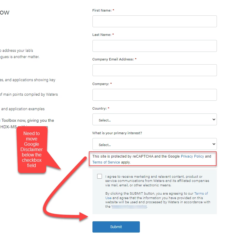 reCAPTCHA Integration - Move Google disclaimer to bottom of form