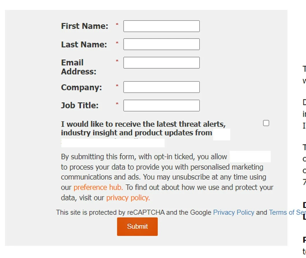 When I add the said form to a Marketo landing page, the reCAPTCHA display text spills over the edge of form.