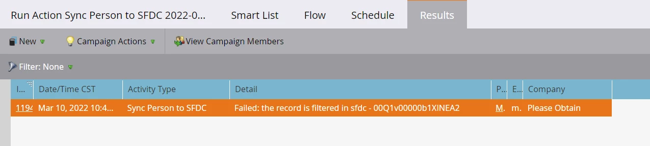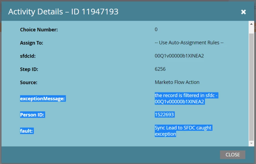 Record is filtered in sfdc- Sync Lead to SFDC caught exception
