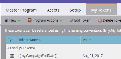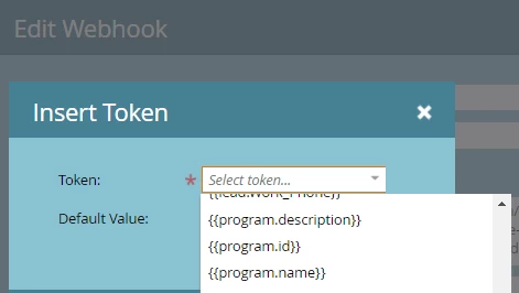 to Sanford's point: just type in {{my.CampaignEndDate}}, set a default if you want, and (of course) make sure you only use the webhooks in programs with that token. They won't show up in the drop-down because the webhook isn't built inside the program.