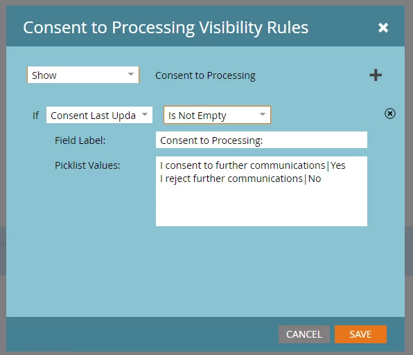When the same person hits the form again, the form will not re-calibrate despite these values being null. The result is that the "consent to process" options no longer appear while clicking the submit button writes another "Consent last updated" date.