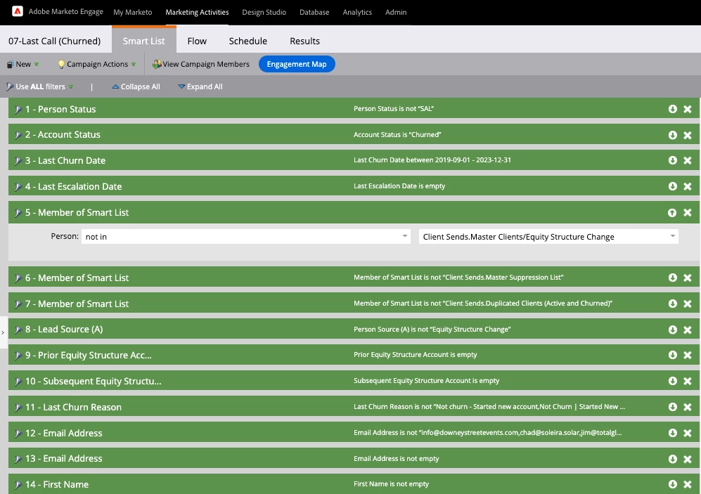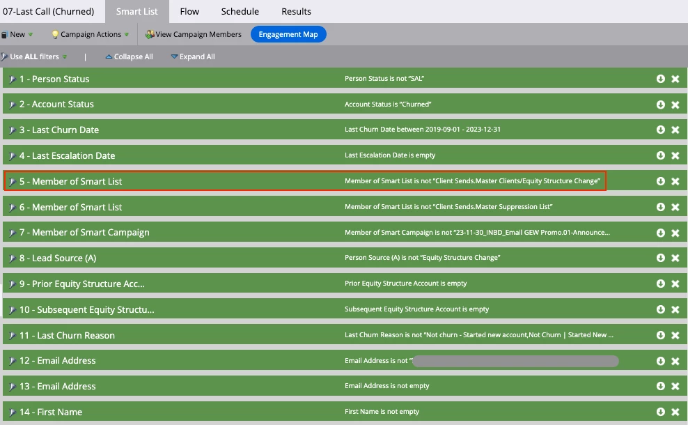 I'm trying to get rid of a couple of emails that shouldn't receive my email, so I created an "exclusion smart list" with all records I want to exclude. Then I used that smart list as "person not in" and set my exclusion smart list.