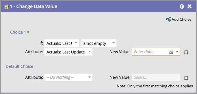 I did not find "Is empty" for the new value. The attribute1 takes formats like date and string types.