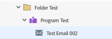 I have created an Email-type Program (Program Test) and a child Email (Test Email 002):