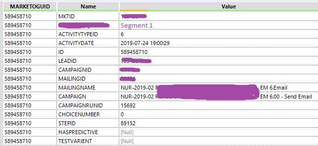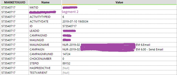 Currently I'm working from various tables that I'm pulling into our data warehouse, and looking at the Email Send activities for people from two different segments I can't see anything that differentiates which dynamic content segment they fell into: