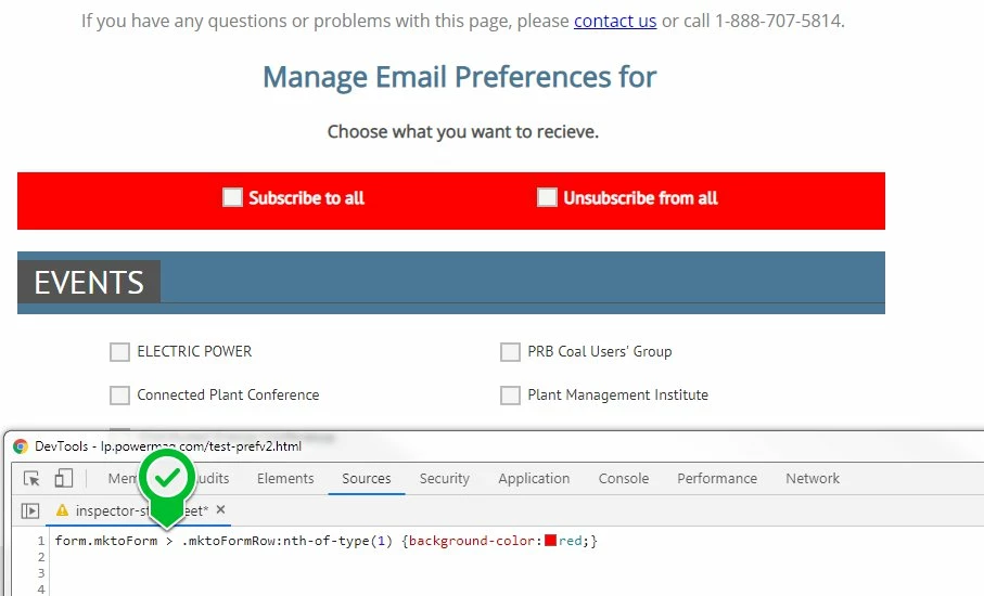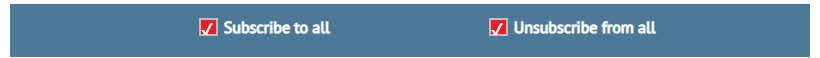 - I'm using checkbox lists for all of my checkboxes, and have the main options grouped in fieldsets. When a user checks either "subscribe to all" or "unsubscribe from all" I want to check or uncheck all checkbox lists in the fieldset. I'm using the script described in this discussion, which works perfectly when my "subscribe to all/unsubscribe from all" fields are using the checkbox input, but it falls apart when I change them to a checkbox list: Re: Marketo Form: Uncheck other boxes when a certain checkbox gets checked