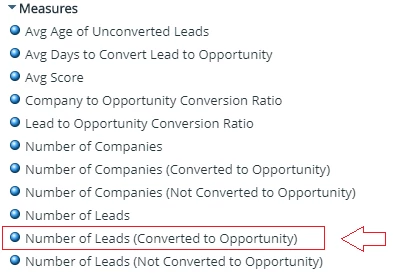 In Revenue Explorer, specifically under the "Lead Analysis" Report type, I have a measure called "Number of Leads (Converted to Opportunity)":