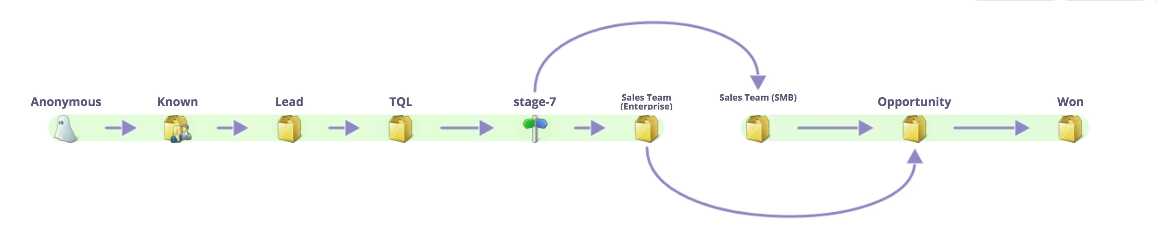 When using Gates in the Revenue Model, will both stages following the gate will be in the success path? If you have a TQL team that transfers leads to 2 distinct sales organizations and would like to see the flow to and from these groups separately, Is using the Gate the right option?