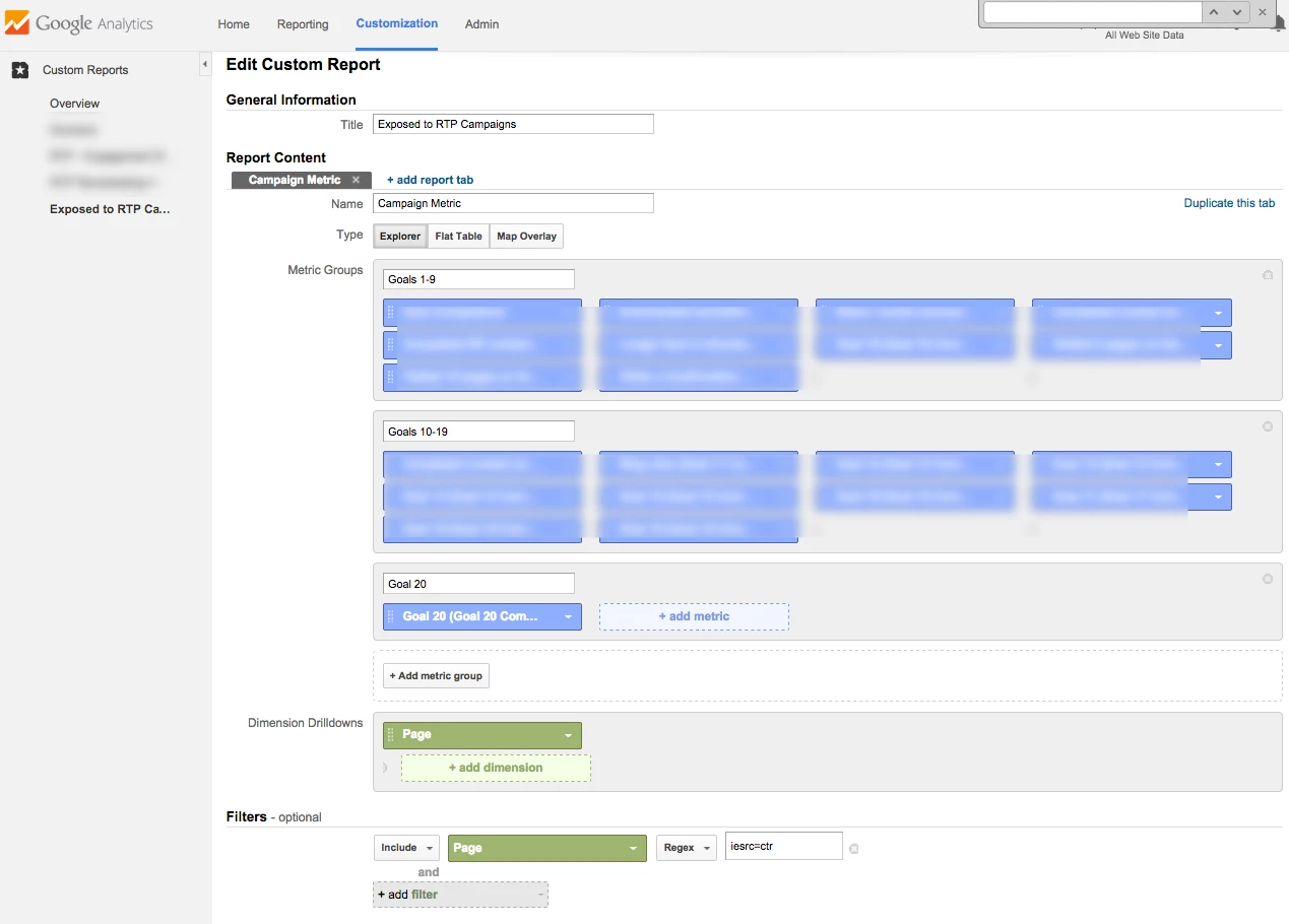 Does anybody have any experience of tweaking the standard RTP dashboard in Google Analytics?