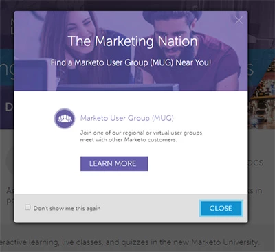 How can I include something like a "Don't show me this again" checkbox. An example of this can be seen on this Marketo page: nation.marketo.com/welcome