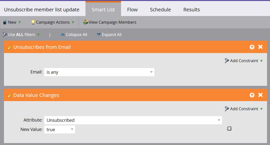 Shall I run a Smart campaign as you can see below with the mentioned triggers so that each time any member opts to be unsubscribed it gets updated and they do not receive any email from us in the future except for operational ones.