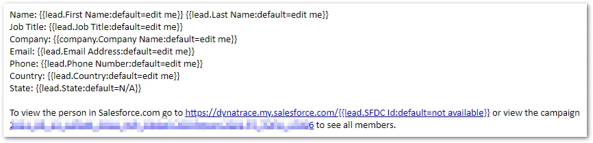 I set up an email that basically says you have a hot lead that completed a demo request form. How do I include the details of that specific lead every time there is a form fill?