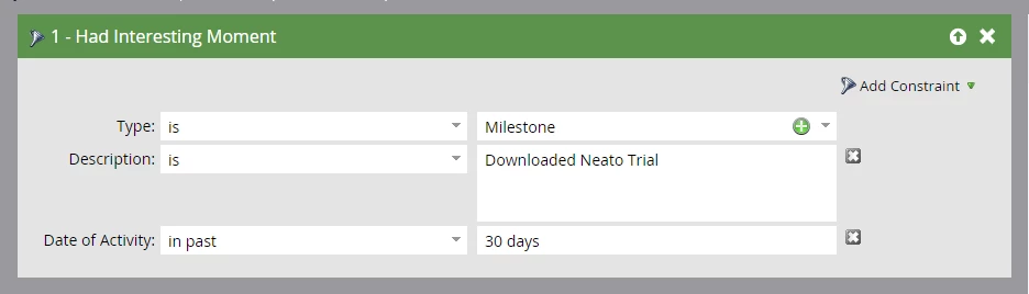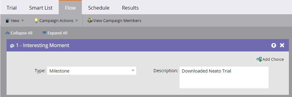 And to get your report of trial Interesting Moments, you'd make a Smart List based on the Description you used in the Interesting Moment campaign from above: