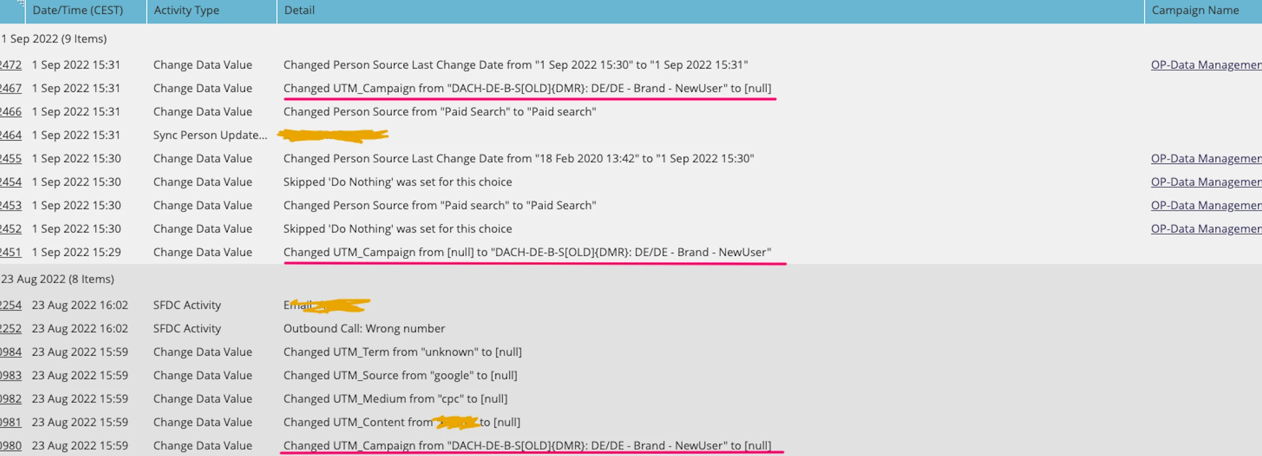 The problem is, that I can’t find the pattern. Why happened only those couple of leads? Why happened with all 5 UTM fields (and 1 more other field, but only these 6 fields), It is random, there’s no pattern when it happens (like 10 minutes after I change it, it will be changed back again). So this kind of rule.