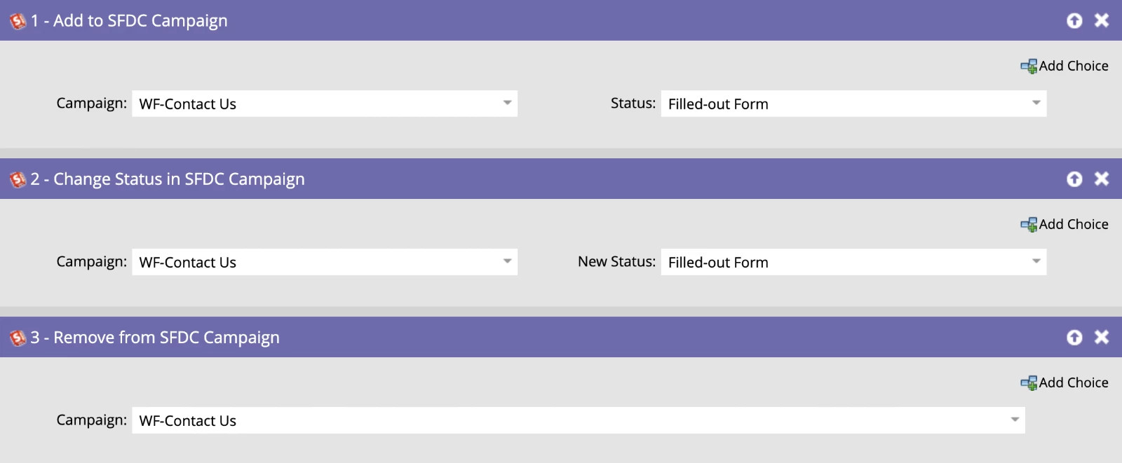 - Remove from SFDC Campaign: Removes records from Salesforce Campaigns.