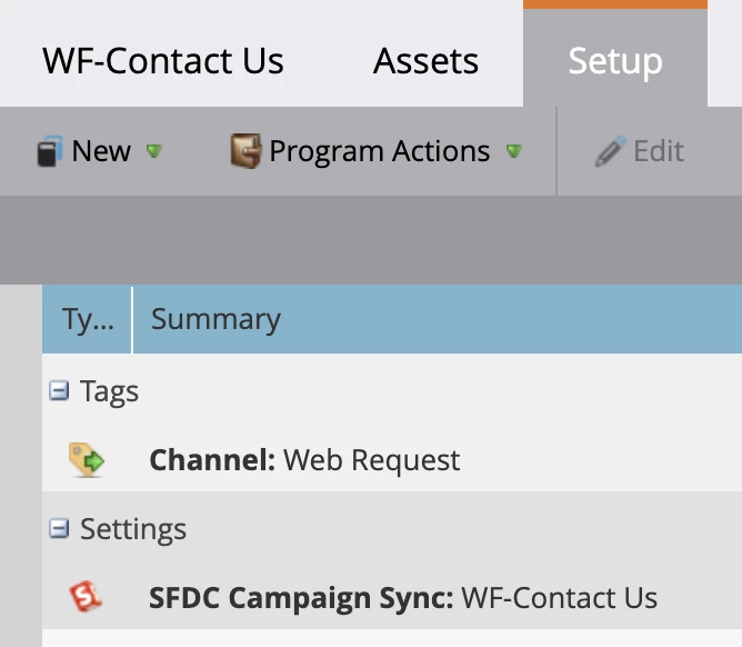 Alternatively, you can directly sync the Marketo Program with a Salesforce Campaign within the Setup tab of the Marketo Program, achieving a 1:1 sync.